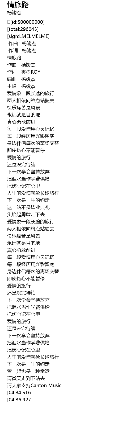| [04:03.260] | ren sheng de ai qing jiu xiang chang tu lv xing |