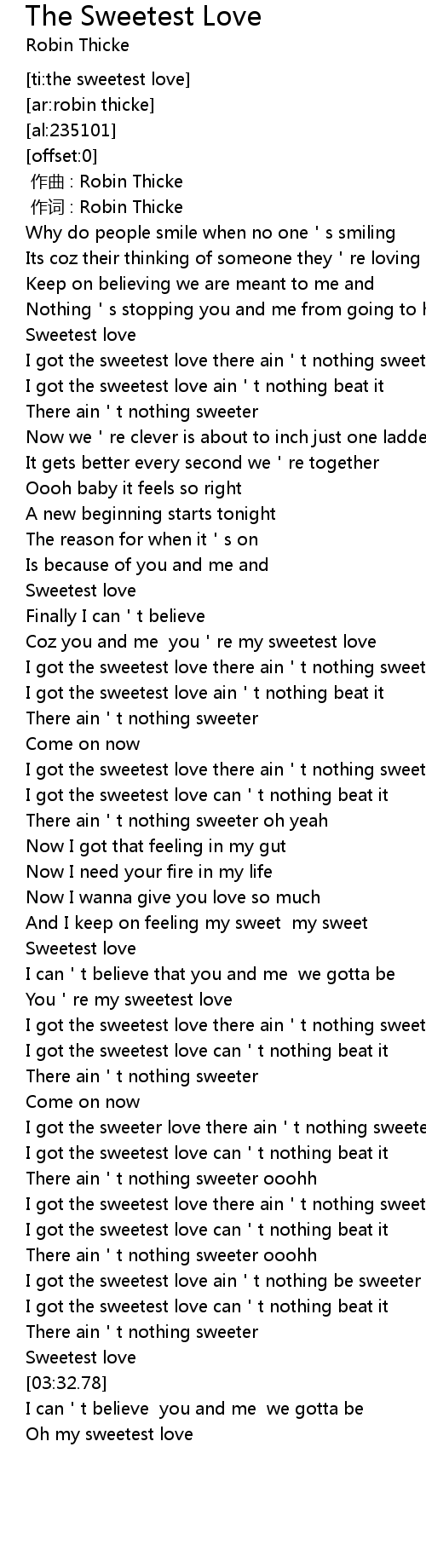 | [03:17.56] | I got the sweetest love ain't nothing be sweeter |