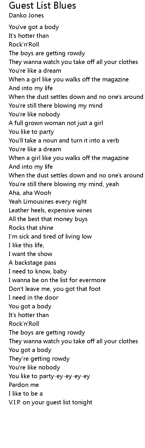 V.I.P. on your guest list tonight |