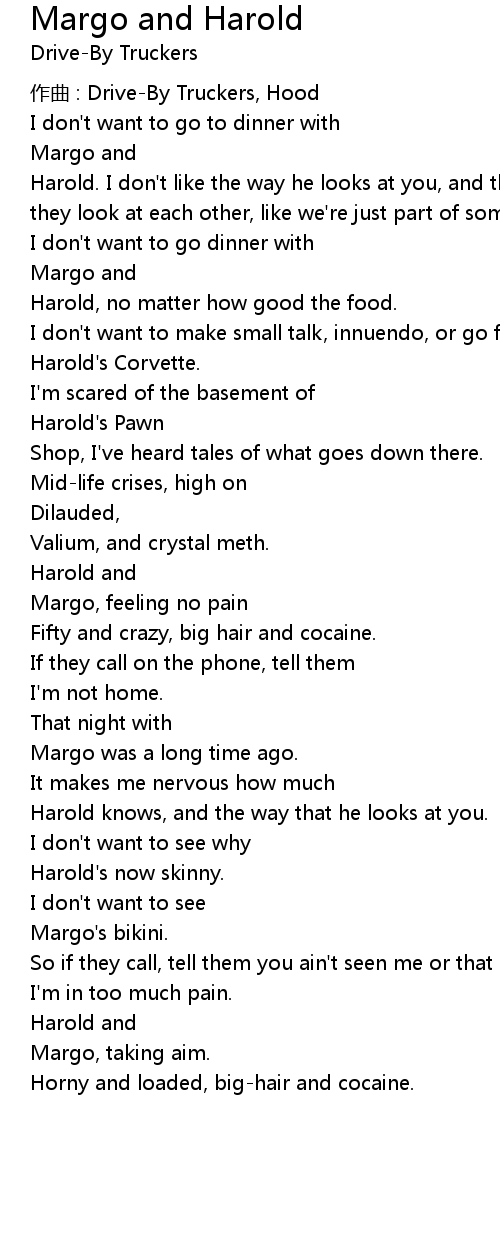 | Harold. I don't like the way he looks at you, and the way she looks at me, way they look at each other, like we're just part of some private joke. | |