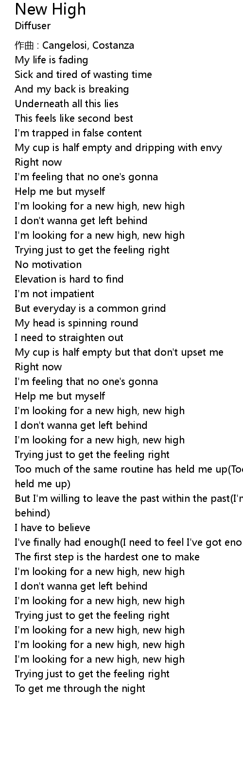 | I'm looking for a new high, new high | |