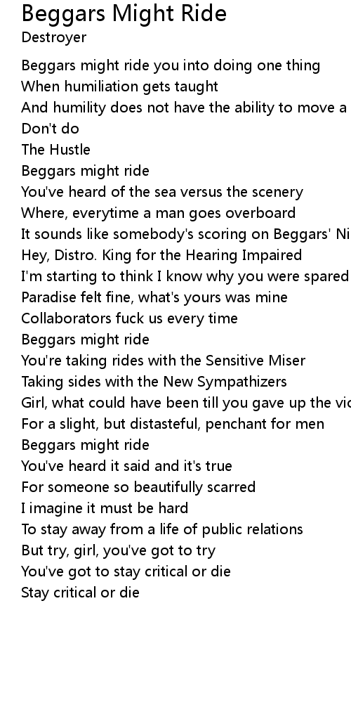 Beggars might ride you into doing one thing |
