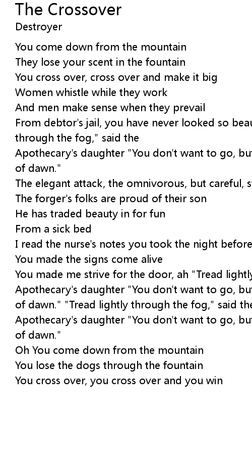 Apothecary's daughter "You don't want to go, but you gotta, into the half-light of dawn." "Tread lightly through the fog," said the |