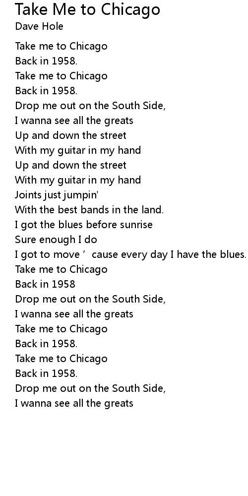 | Take me to Chicago | |