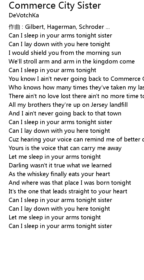 | Can I sleep in your arms tonight sister |