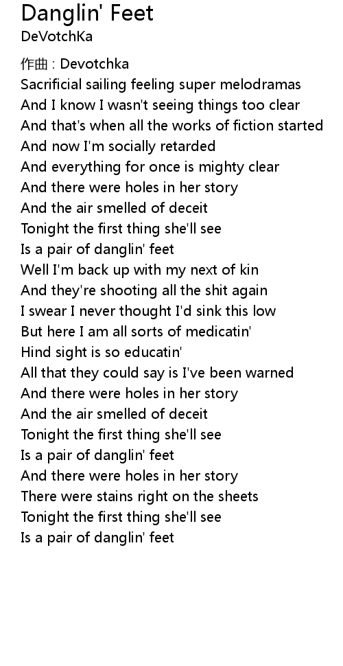 | Song | Danglin' Feet |