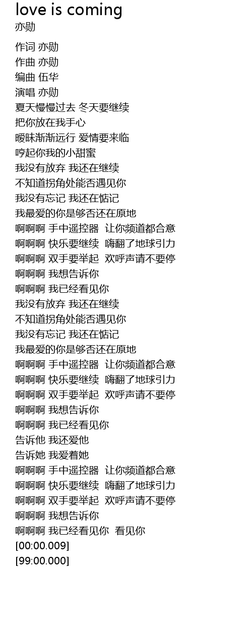 | [00:23.60] | 暧昧渐渐远行 爱情要来临 |