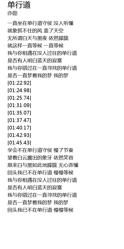 | [01:51.50] | 学会不在单行道守侯 慢了节奏 |