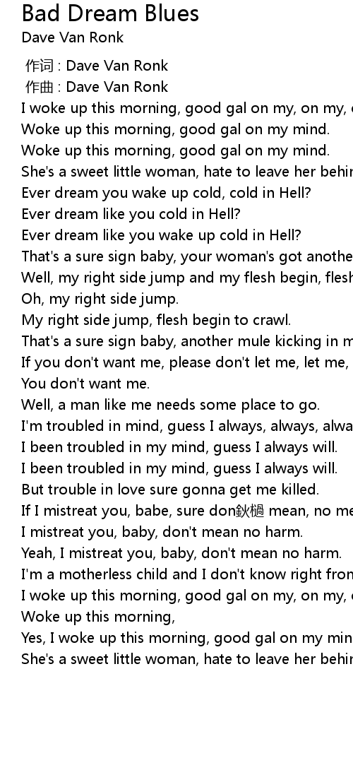 | [00:00.000] | 作词 : Dave Van Ronk |