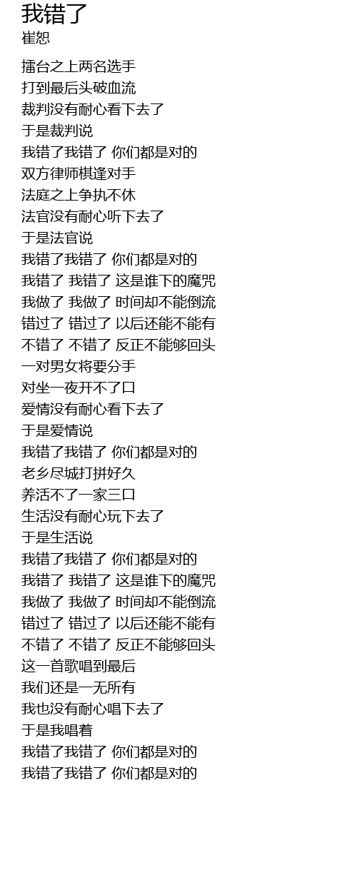 | [00:25.97] | wo cuo le wo cuo le ni men dou shi dui de |