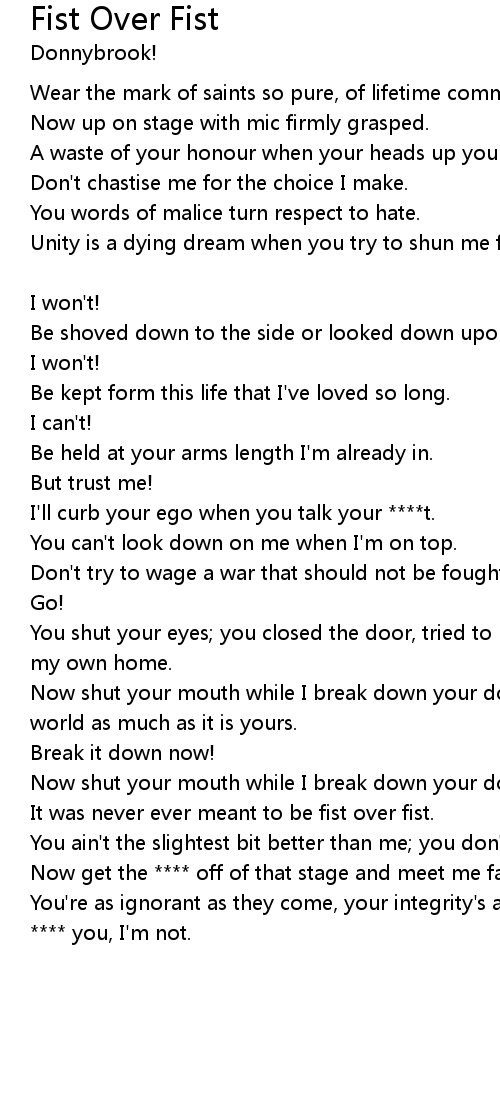 It was never ever meant to be fist over fist. |
