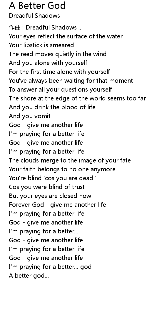 | I'm praying for a better life | |