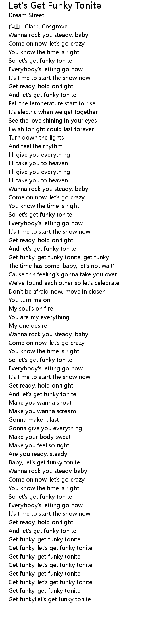 | Get funky, let' s get funky tonite | |