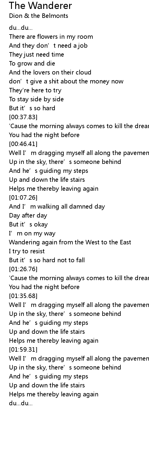 | [01:36.05] | Well I’m dragging myself all along the pavement |