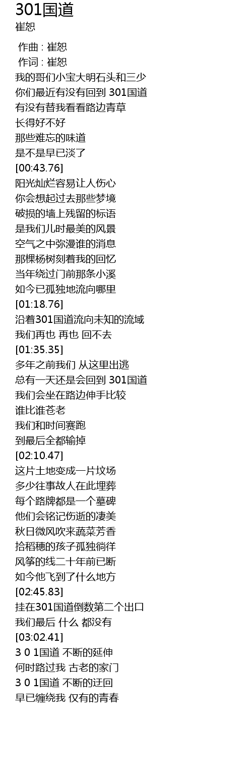 | [01:45.98] | 总有一天还是会回到 301国道 |