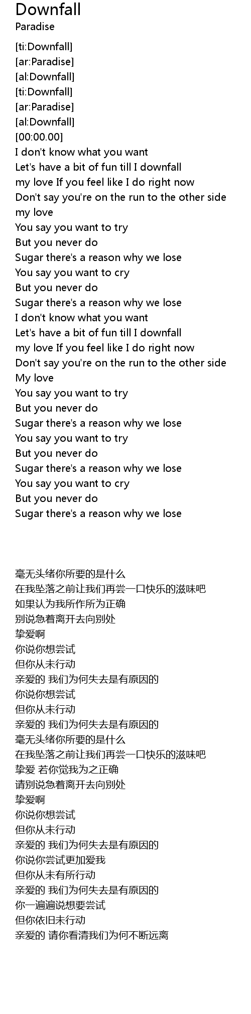 | [00:25.65] | Let's have a bit of fun till I downfall |