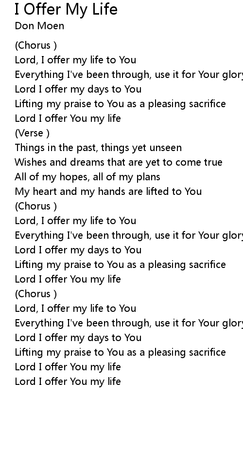 | [01:47.87] | Lifting my praise to You as a pleasing sacrifice |