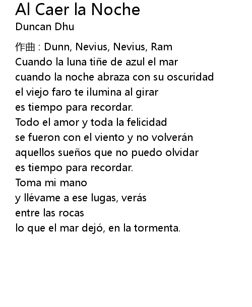 | Song | Al Caer la Noche |