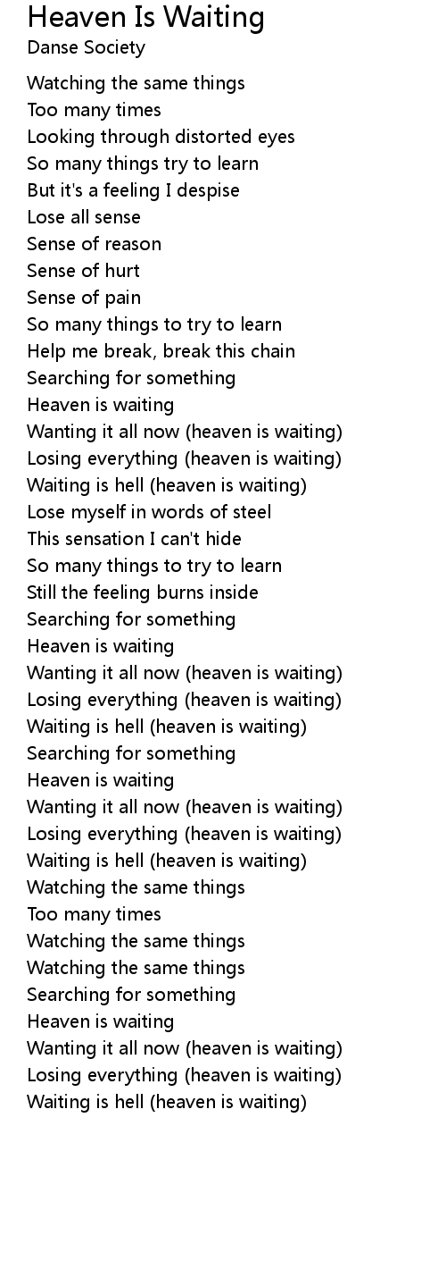 Waiting is hell (heaven is waiting) |