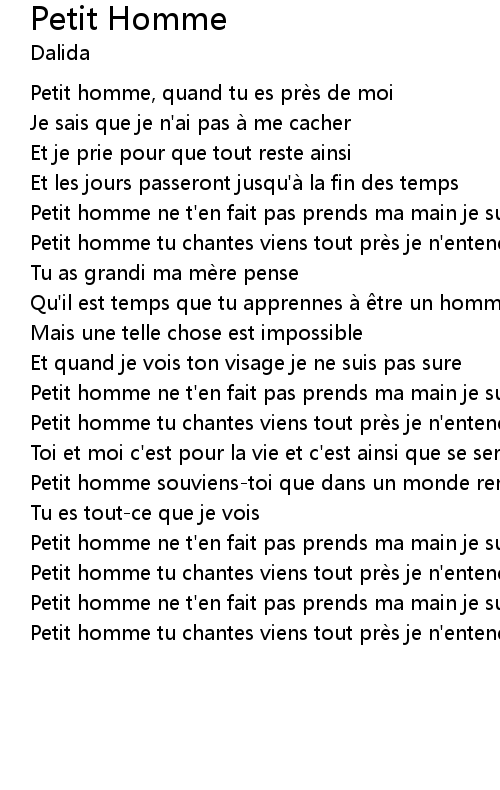 | Petit homme tu chantes viens tout pre s je n' entends pas | |