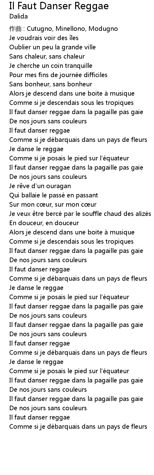 | Song | Il Faut Danser Reggae |