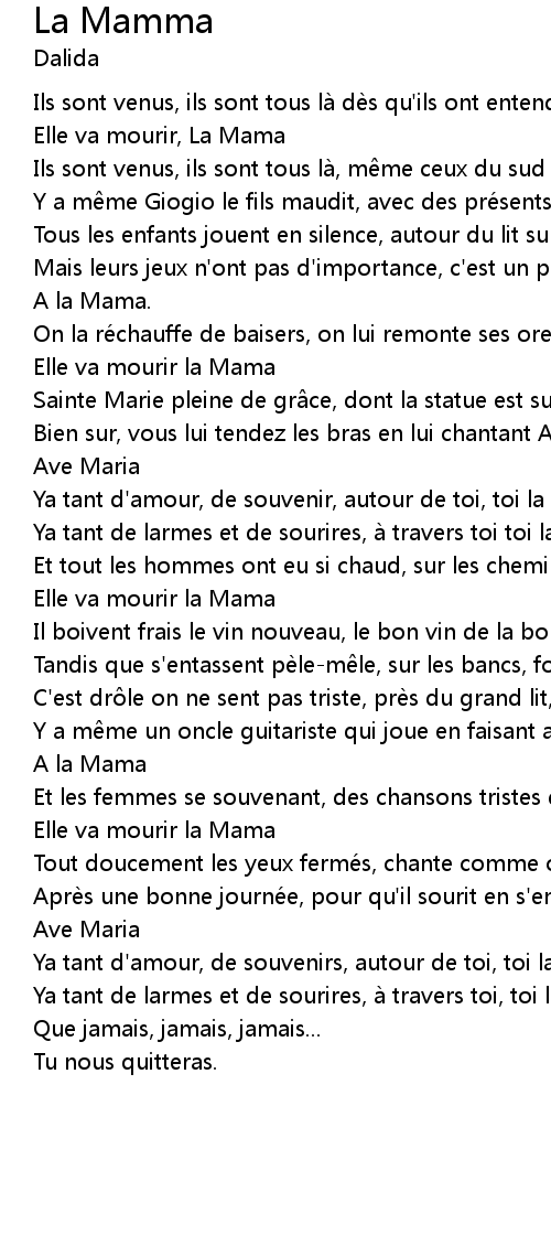 | Ya tant d'amour, de souvenir, autour de toi, toi la Mama | |