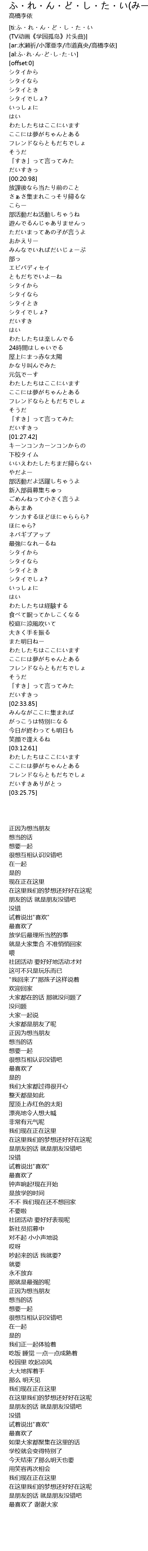 | [ti:ふ・れ・ん・ど・し・た・い (TV动画《学园孤岛》片头曲)] | |