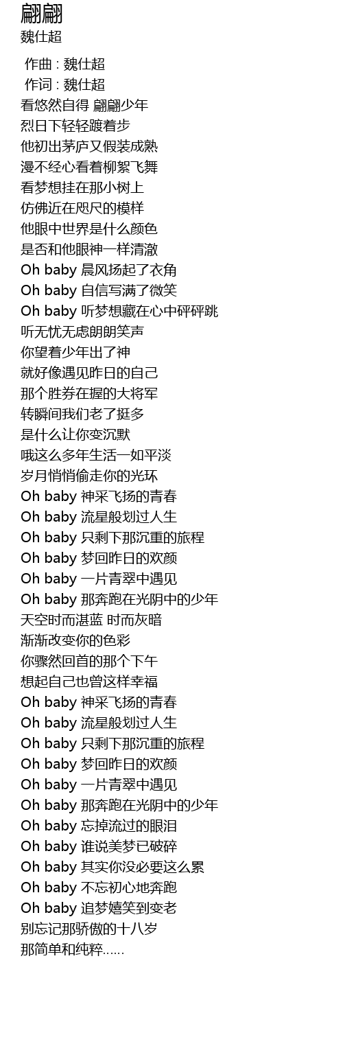 | [00:01.000] | 作词 : 魏仕超 |
