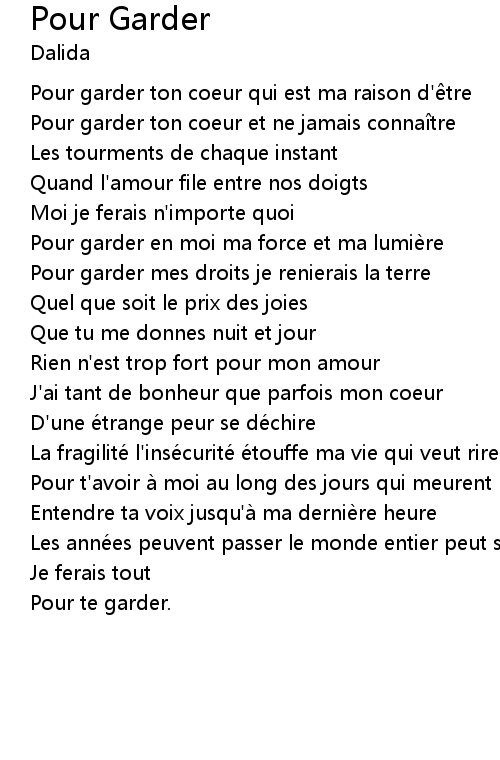| Pour garder ton coeur qui est ma raison d' tre | |