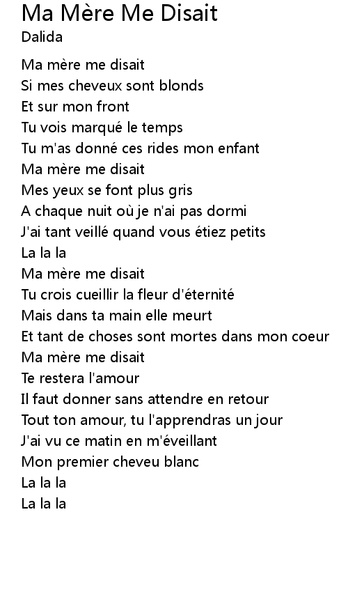 | Song | Ma Mère Me Disait |