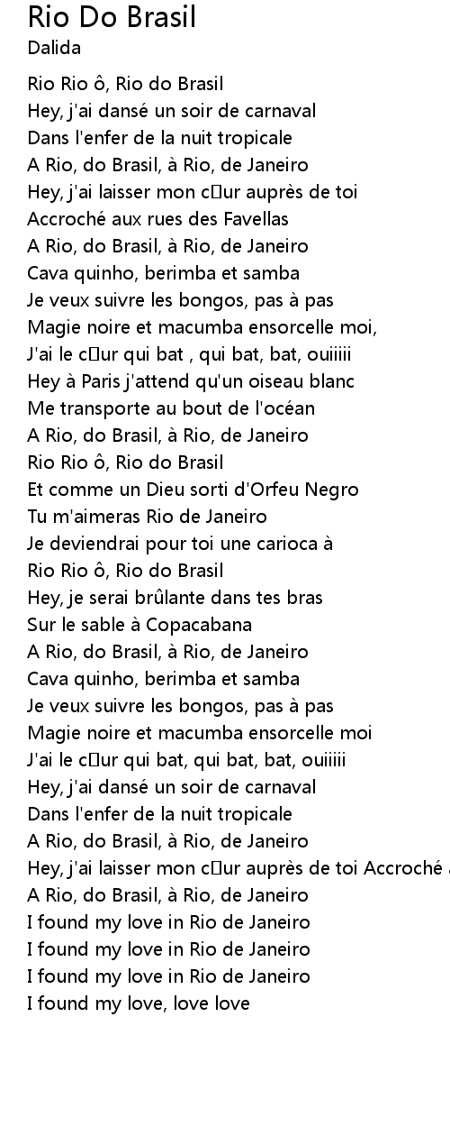 | Tu m'aimeras Rio de Janeiro | |