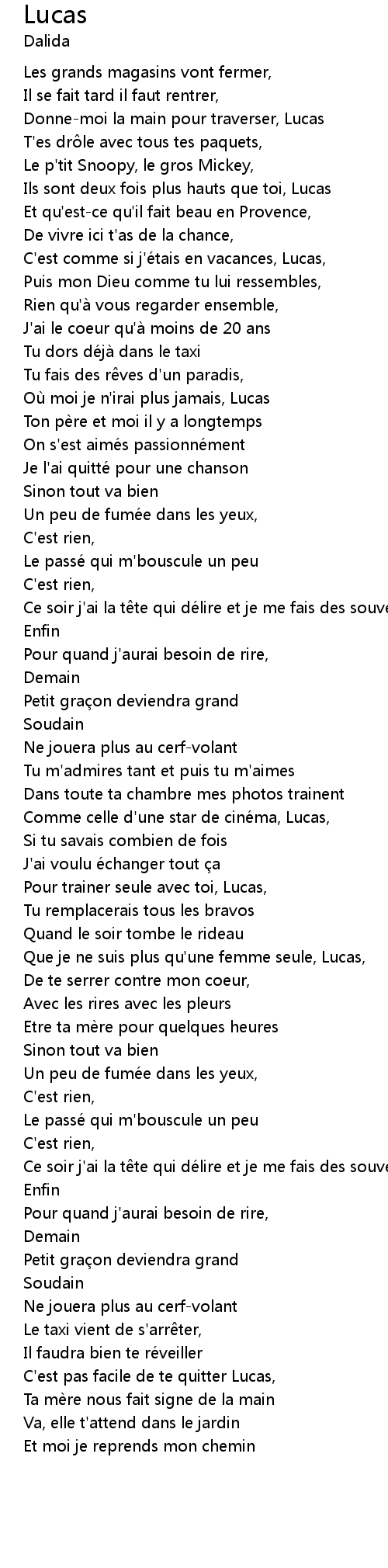 | Ou moi je n' irai plus jamais, Lucas | |