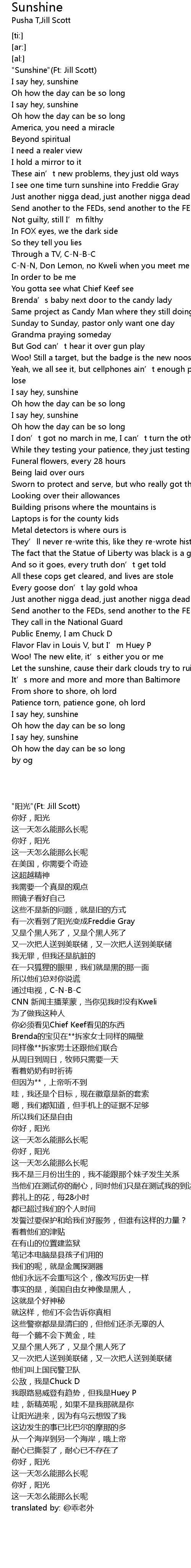 | [00:00.00] | "Sunshine"(Ft: Jill Scott) |