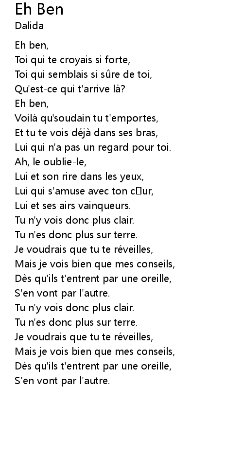 | Song | Eh Ben |