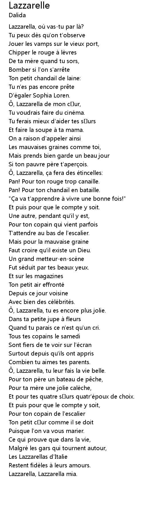 | Ô, Lazzarella, tu leur fais la vie belle. | |