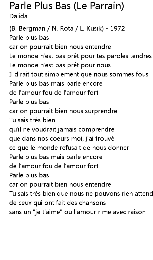 | Song | Parle Plus Bas (Le Parrain) |