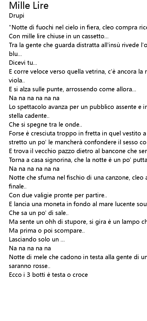 | Song | Mille Lire |