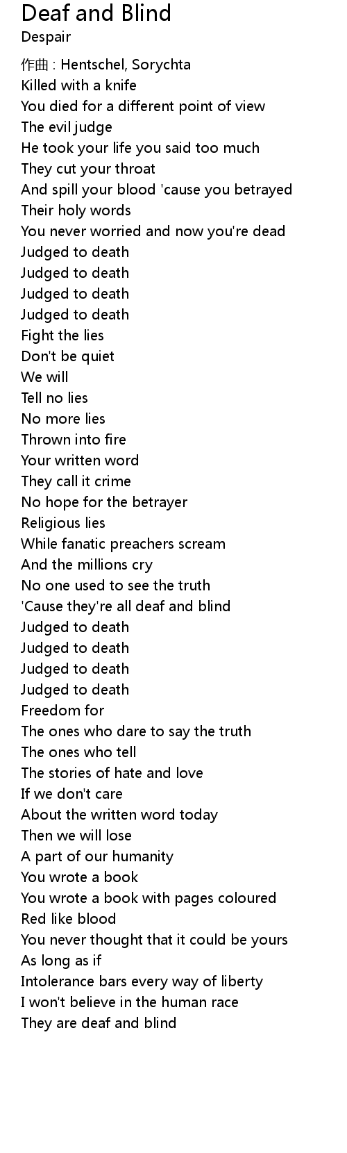 | Song | Deaf and Blind |