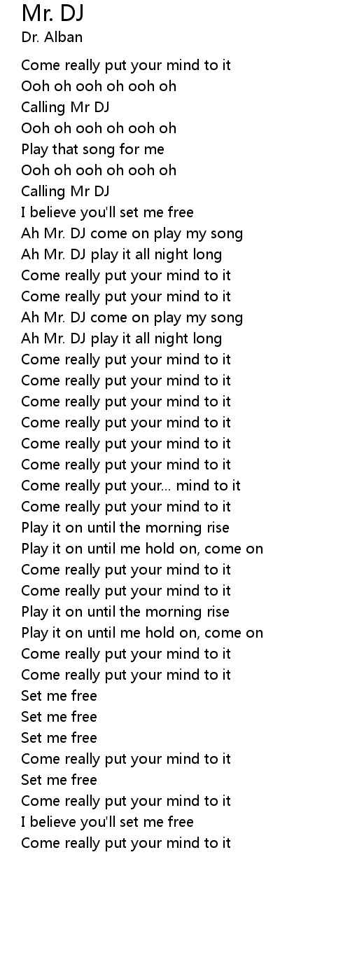| Ah Mr. DJ play it all night long | |