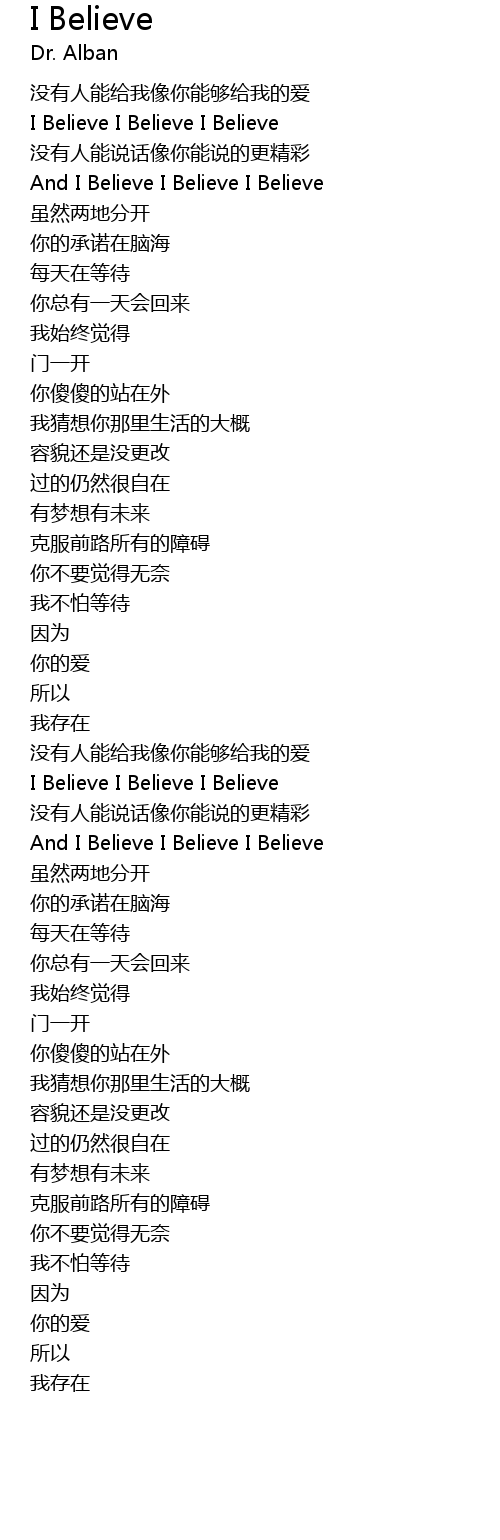 | [00:58.70] | And I Believe I Believe I Believe |