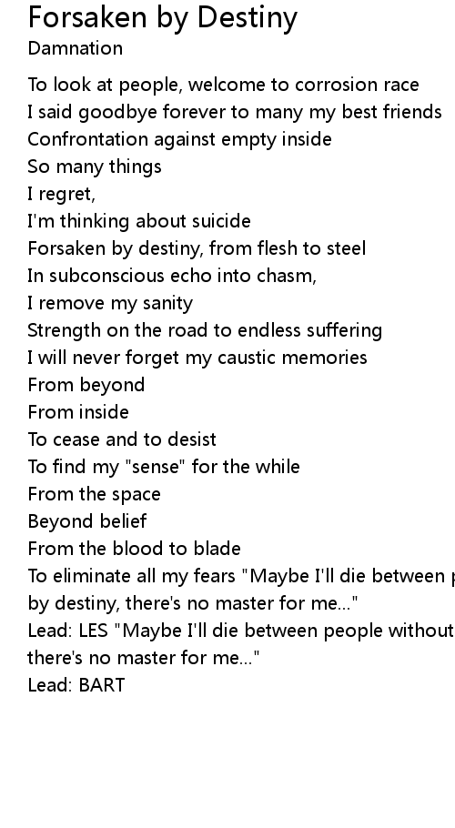 | Forsaken by destiny, from flesh to steel | |