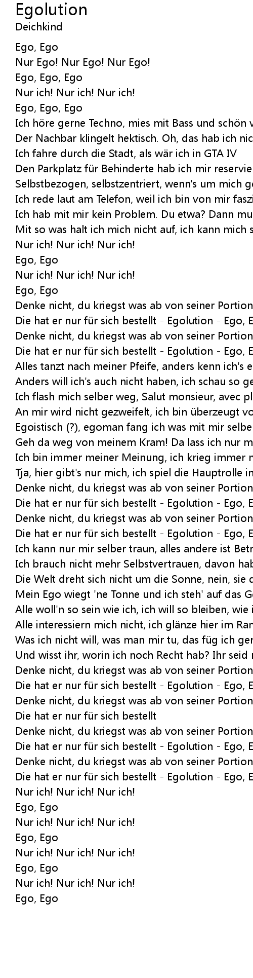 | Die hat er nur für sich bestellt - Egolution - Ego, Ego | |