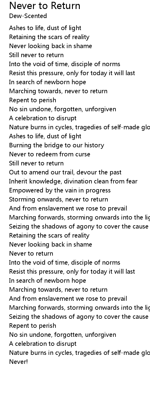 Still never to return |