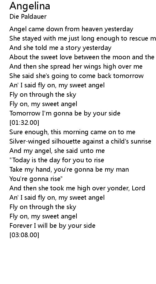 An' I said fly on, my sweet angel |