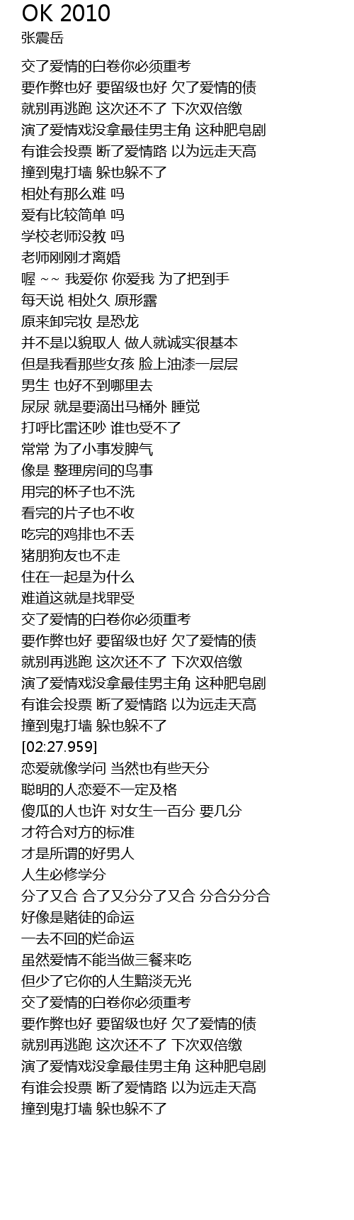 | [02:51.259] | sha gua de ren ye xu dui nv sheng yi bai fen yao ji fen |