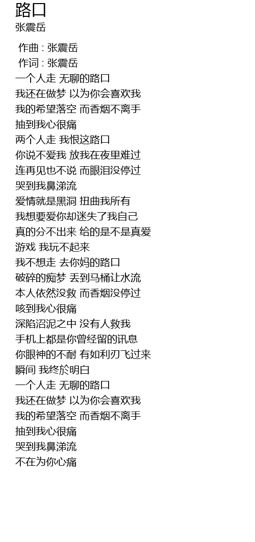 路口 lu kou Lyrics