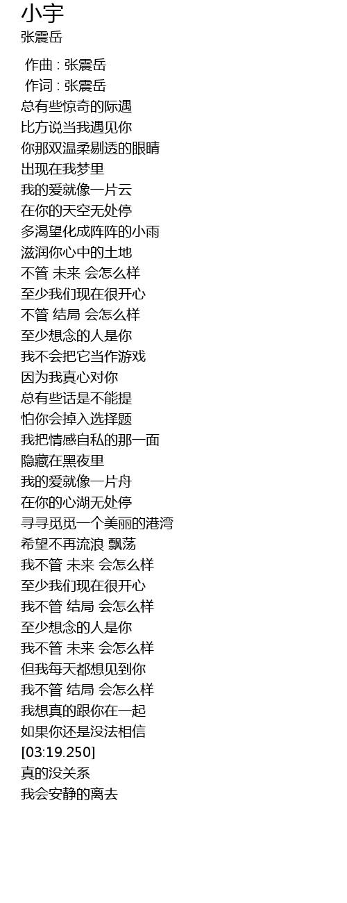 | [00:00.00] | 作曲 : 张震岳 |