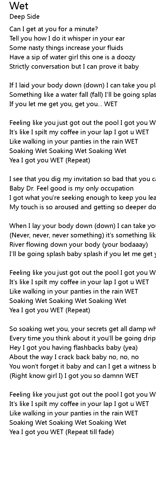 | So soaking wet you, your secrets get all damp when you see me baby | |
