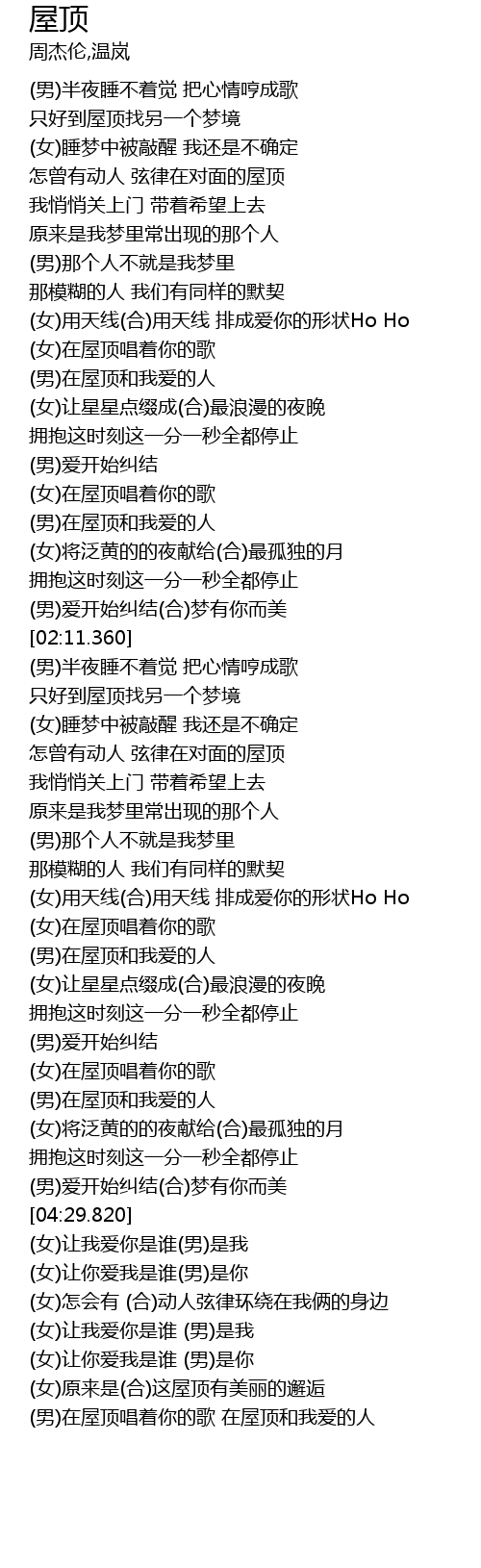 | [04:04.940] | (男)在屋顶和我爱的人 |