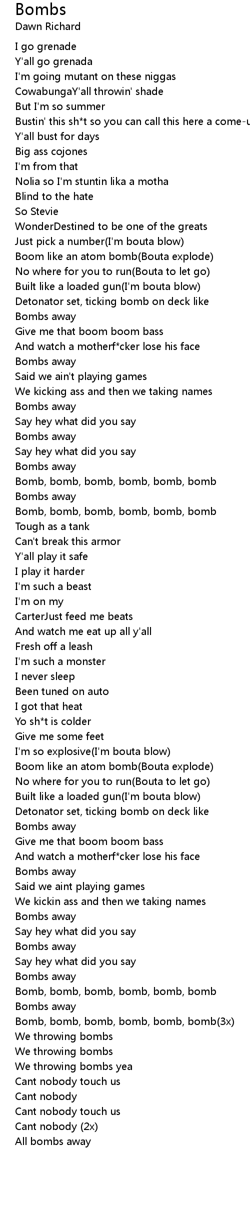 Bomb, bomb, bomb, bomb, bomb, bomb(3x) |